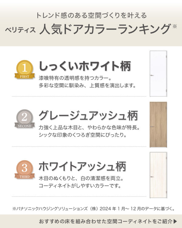 ■【トレンド感のある空間づくりを叶える】ベリティス人気ドアカラーランキング