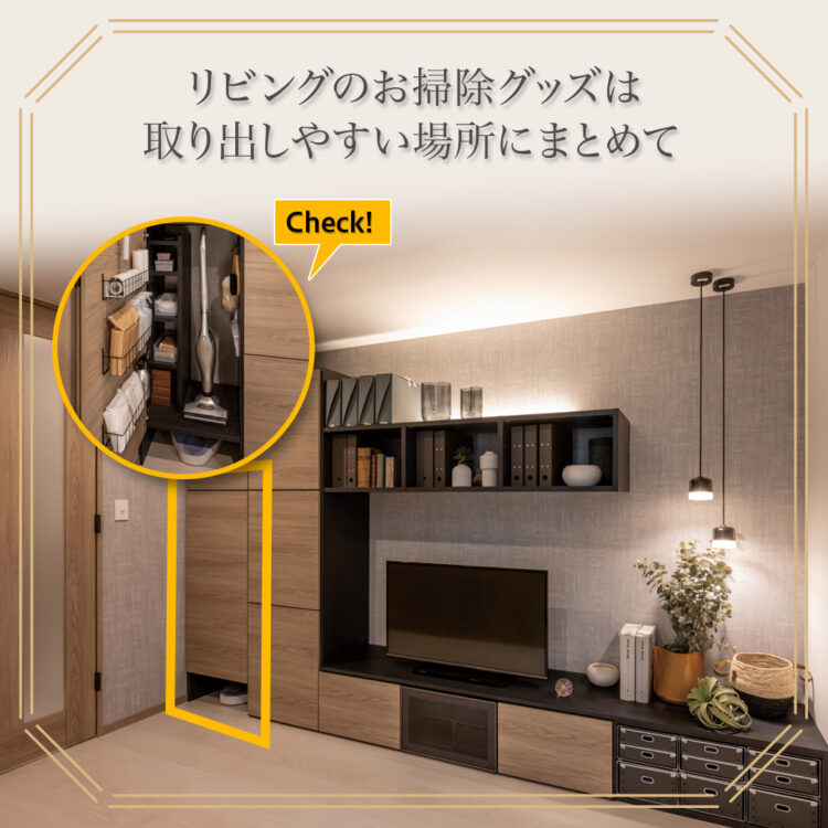 リビングに収納することで気づいたときにサッと使えて、こまめにお部屋のキレイを保つことができます。