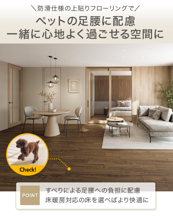 ■【防滑仕様を上貼り】ペットの足腰に配慮。一緒に心地よく過ごせる空間に