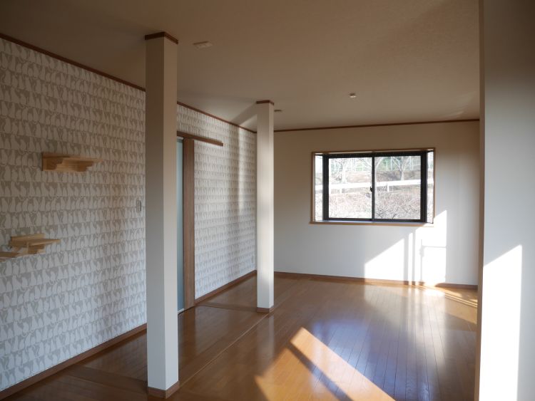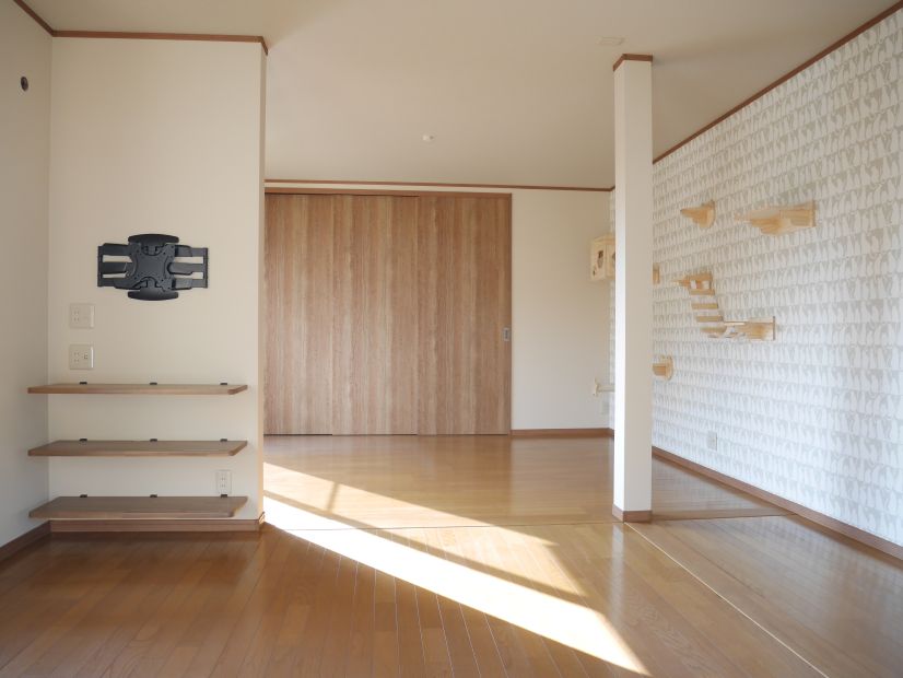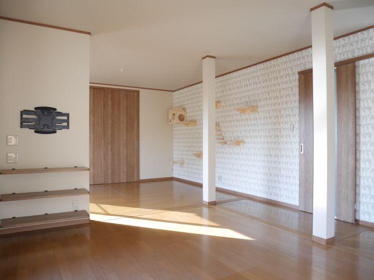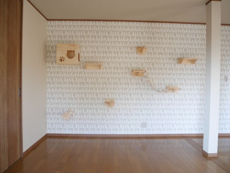 広い壁面には、愛猫が自由に遊べるキャットウォークを設置。